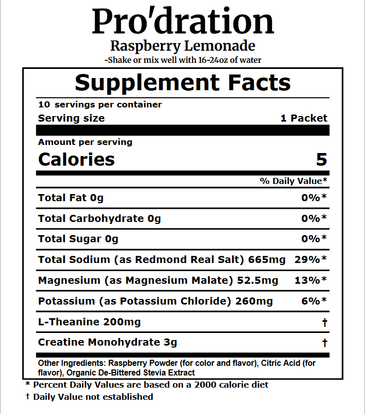 It’s not just hydration—it’s restoration. With science-backed ingredients like Redmond Real Salt, creatine monohydrate, potassium chloride, and magnesium malate, Pro’dration helps you rehydrate smarter, support cellular energy, and bounce back faster. No fillers. No artificial junk. Just real, effective fuel for your body and brain.